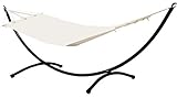 Es gibt Varianten von Hängemattenständern, die aus Metall gefertigt sind. Für Einsteiger eine sehr beliebte Option, da auch der Preis generell relativ niedrig ist. Das pulverbeschichtete Gestell verfügt über Klickverschlüsse, was den Aufbau sehr einfach gestaltet. Da es auch platzsparend verstaut werden kann, ist es auch gut im Kofferraum Ihres PKW´s mitzuführen. Denken Sie nur an den nächsten Urlaub – oder an ein paar Tage am See! Preisgünstig und platzsparend: Ein unschlagbares Set (Hängematte mit Gestell) mit einer Tragkraft von 100 Kilogramm. Die Langlebigkeit eines Hängematten-Sets mit Metallgestell hängt stark von der Beanspruchung ab – wir empfehlen Ihnen ausschließlich Modelle, welche auf uns einen sehr robusten Eindruck gemacht haben.